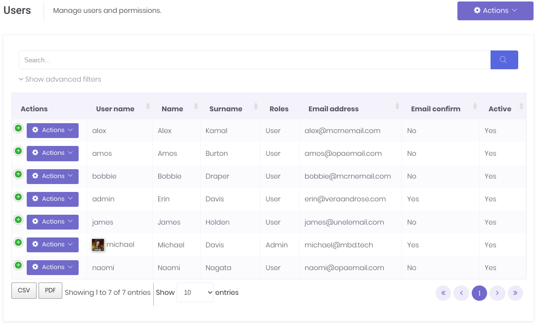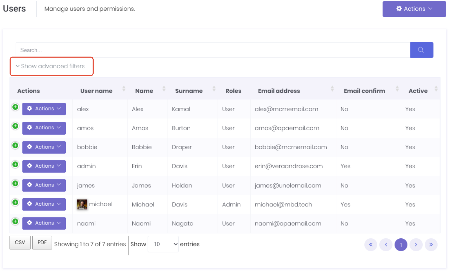 - Filter by role - Filter user list by selected roles.