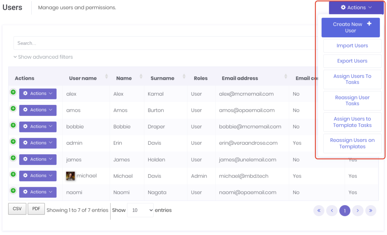 - Import Users - Add multiple users via a csv upload.