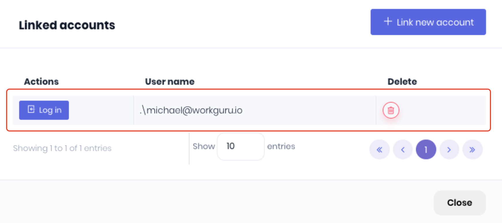 If the account details are correct, the account will be added to your linked accounts list. You can repeat this process to add additional accounts as required. Click the trash icon to delete any linked accounts you no longer require access to.