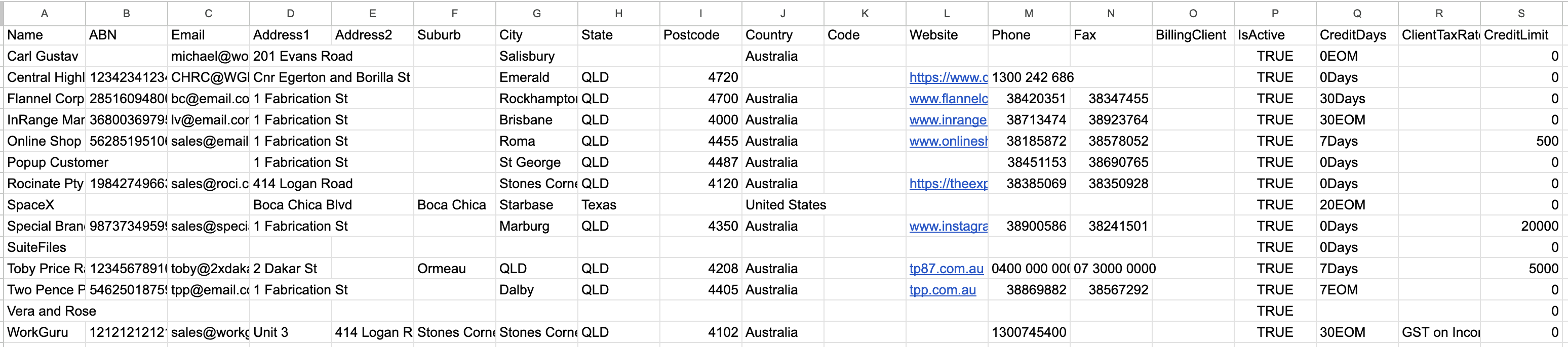 Open the downloaded WorkGuruClientExport.csv file in your spreadsheet editor of choice. Be aware of spreadsheet editors auto-formatting data fields (removing leading 0's, dates and barcodes conversion etc). If you want to be 100% sure no data is auto-formatted, it is highly recommended you import the .csv instead of opening it. As the client import will match on the client name, you can update every column in the export EXCEPT for the client name. If you do change a client name, without using the NewName header, it won't update the existing client and will import a duplicate with the new name. Likewise, if you have new client names on the import, you will be creating new clients in WorkGuru.