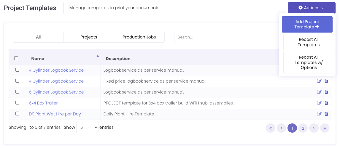 Production templates are now available in the All and Production tabs on the project template dashboard.
