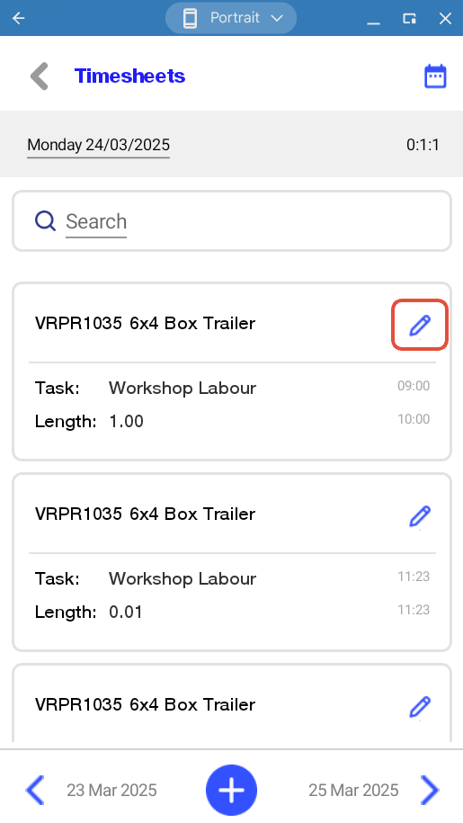 Tap on the pen icon to edit the timesheet