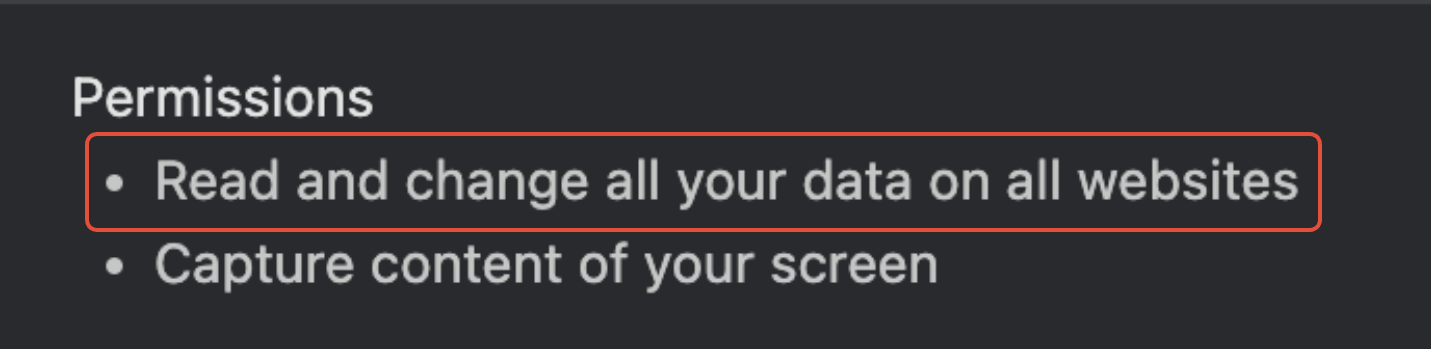 The other common browser related issue encountered by clients is caused by browser extenstions. We recommend disabling any extension that has the following permission: