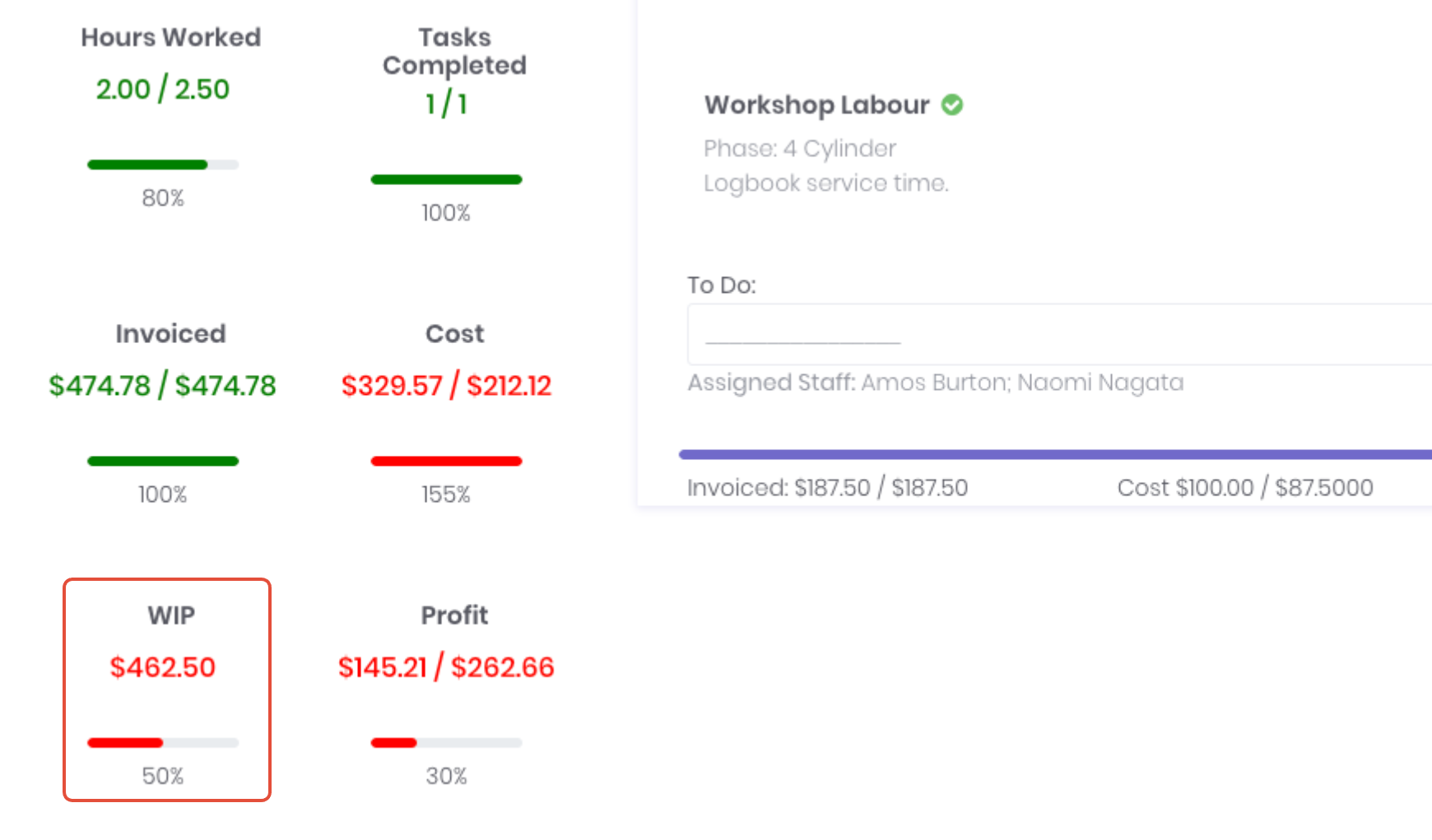 Note: The WIP widget on the project's profit and progress widgets is designed to display the WIP vs Actuals. Technically if you hover over it it will display the correct total for WIP vs Quoted, but if this is the WIP approach that best suits you, the WIP vs Quoted Report is best used for the details.