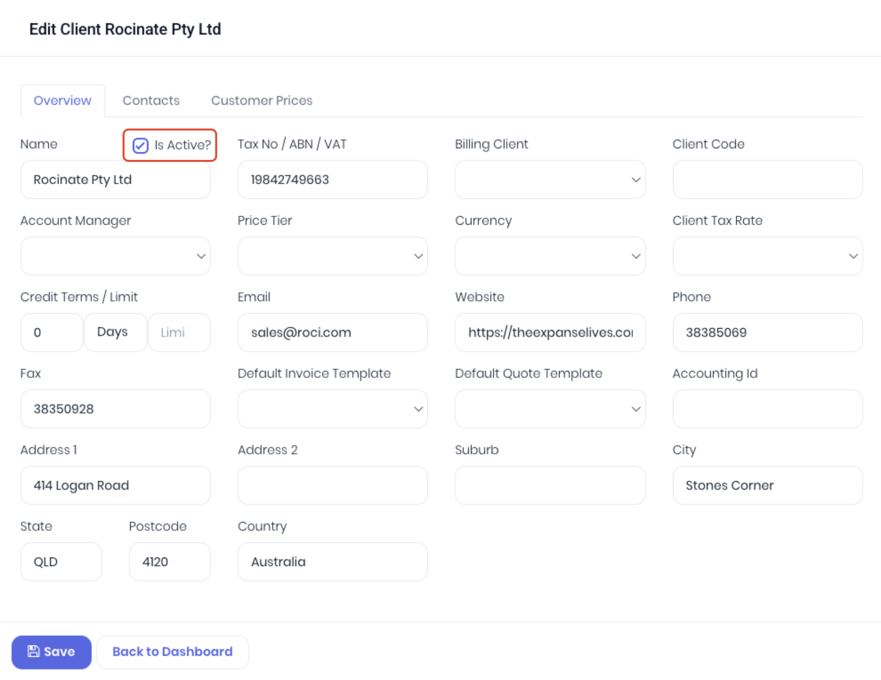 To make a client that is no longer required inactive, edit the client and deselect the Is Active? checkbox. Save to confirm changes.
