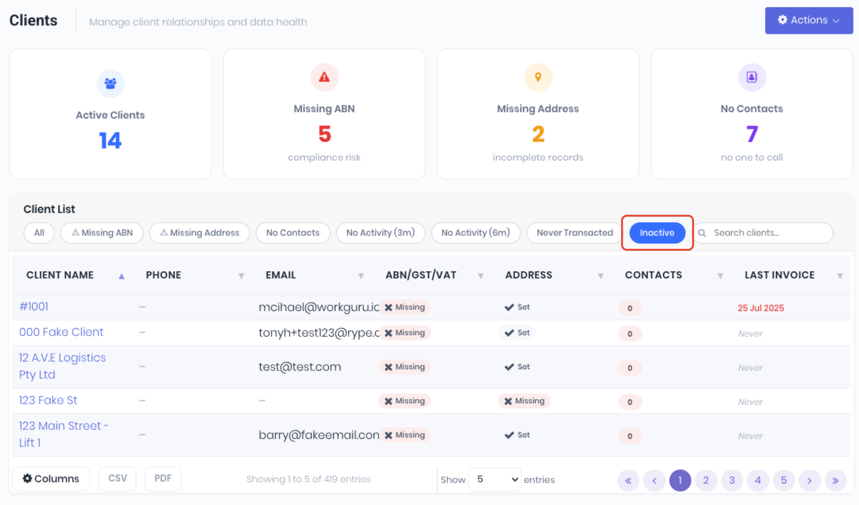 Making Clients Inactive