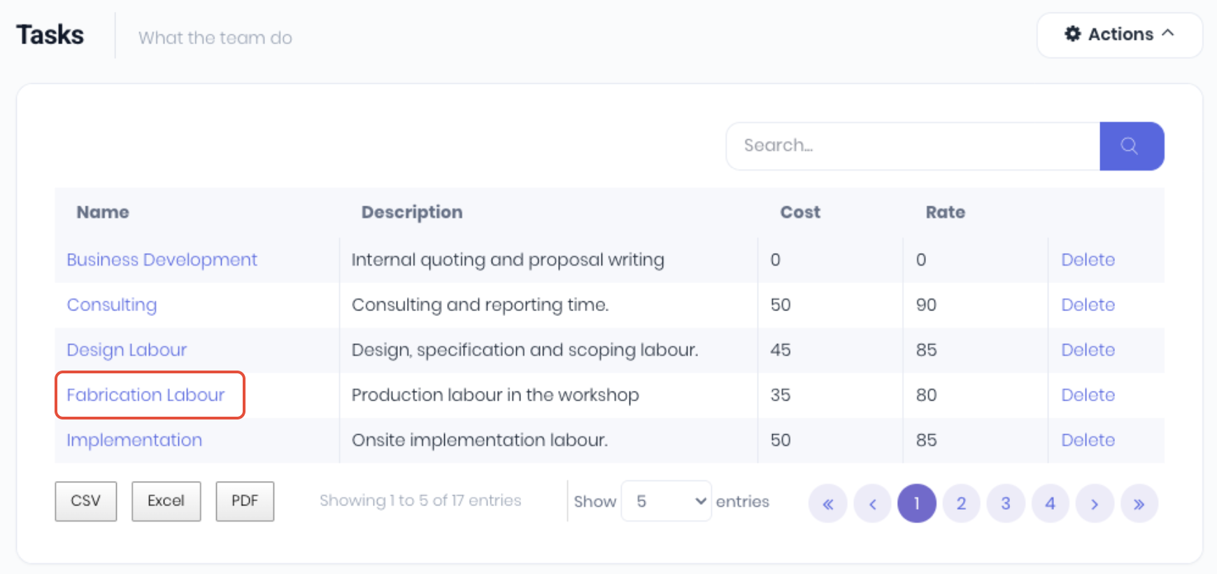 - Unit Cost - Forecast task cost. Only used for quoting.