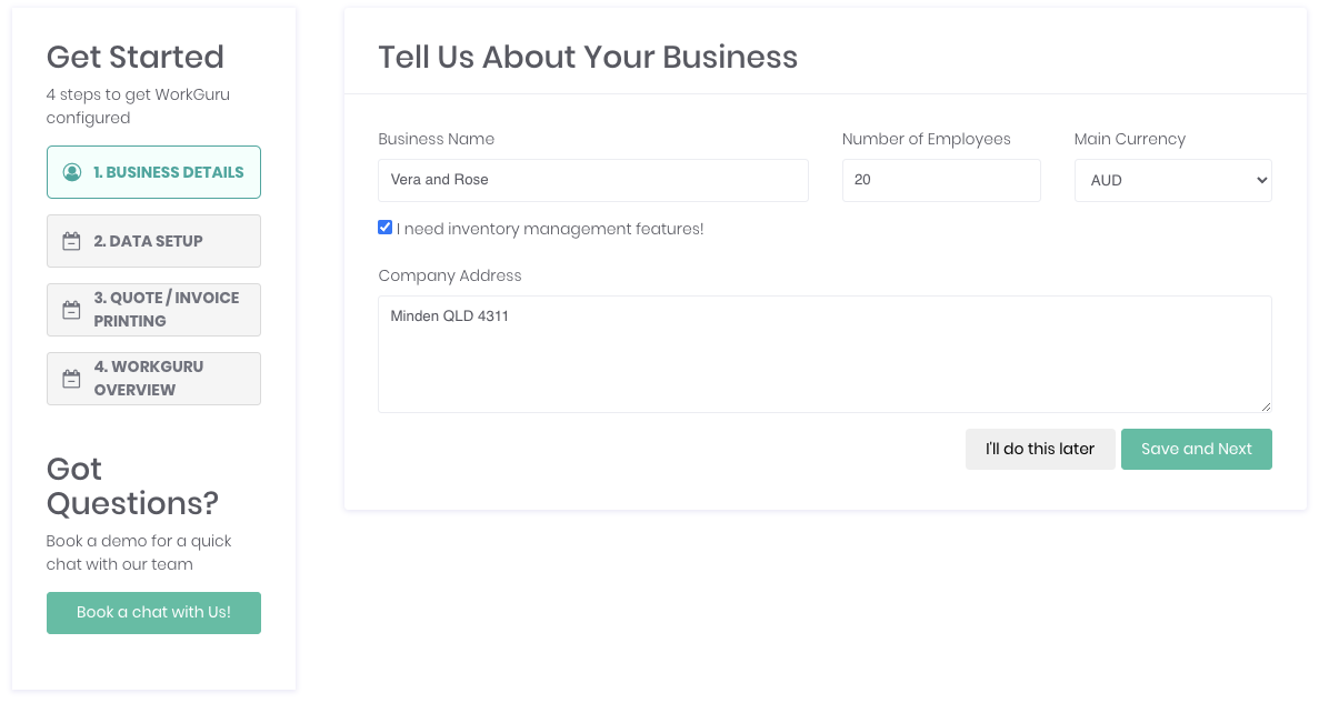 The quickest way to get your new WorkGuru tenant up and running is by using our handy onboarding tool.