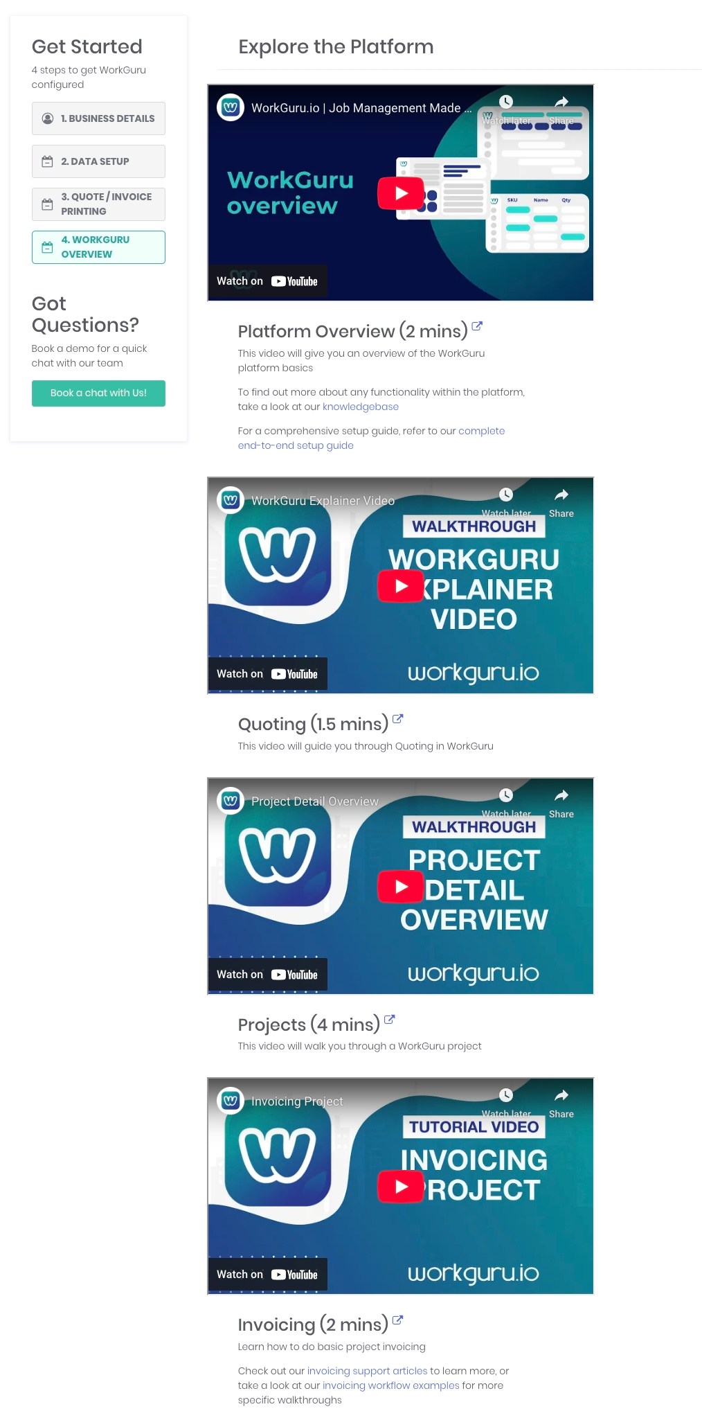 Review key WorkGuru training videos. Quick links our: